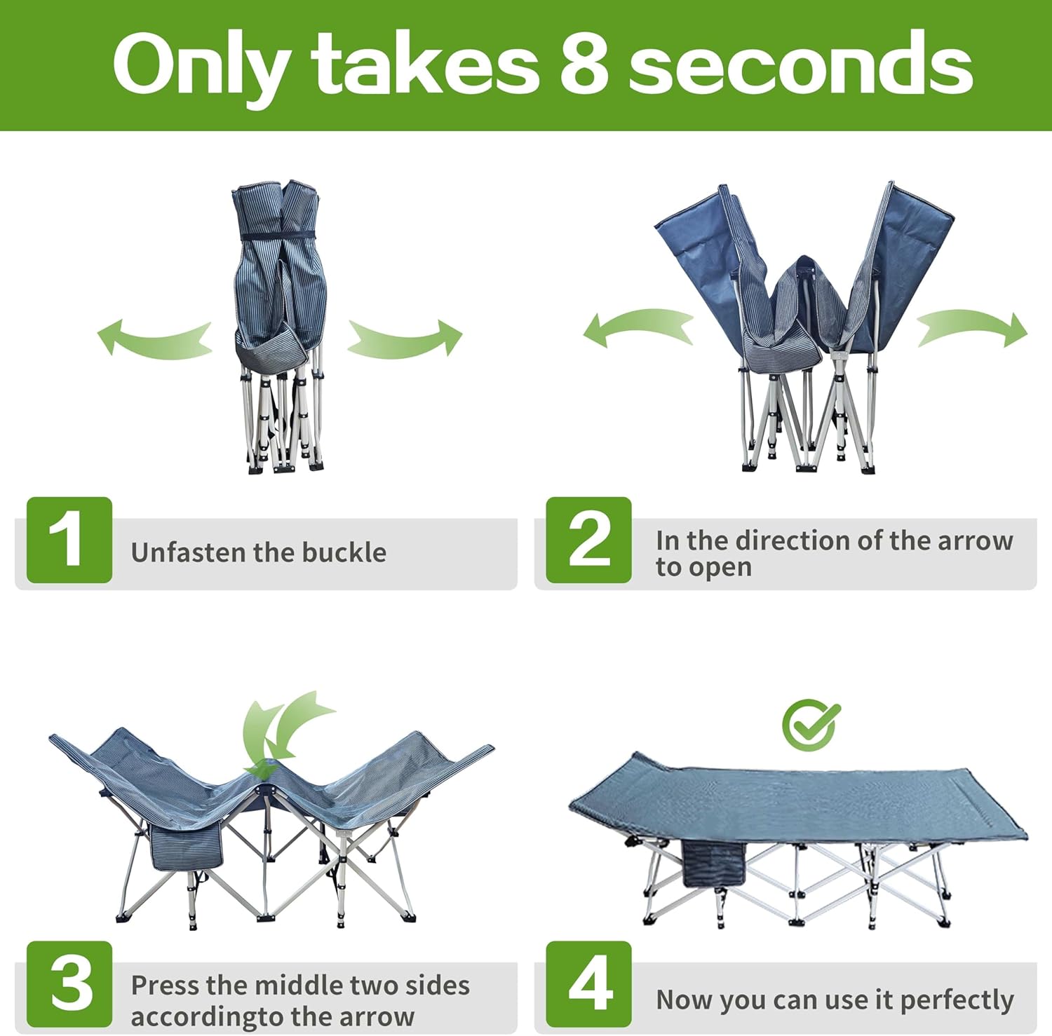 This camping cot is versatile and suitable for various environments, including outdoor camping, hiking trips, and indoor settings like guest rooms or office breaks. Its adjustable head tilt angle and side organizer pockets accommodate reading, resting, and storing essentials such as phones or lamps. Ideal for adults seeking a reliable sleeping solution, it excels in scenarios where space and comfort are priorities, from backyard gatherings to emergency preparedness.